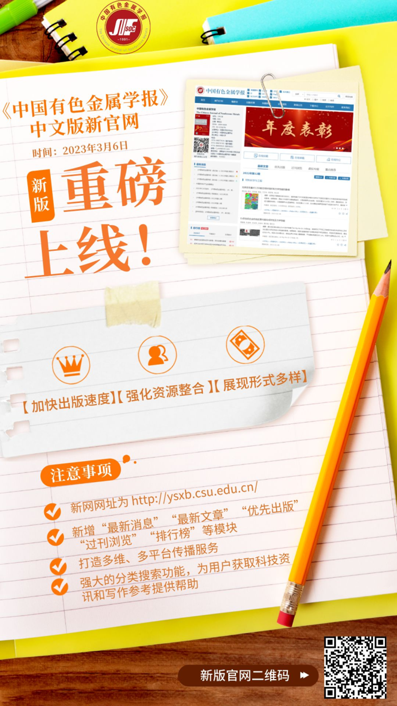 《中國有色金屬學(xué)報》中文版新版官網(wǎng)上線通知
